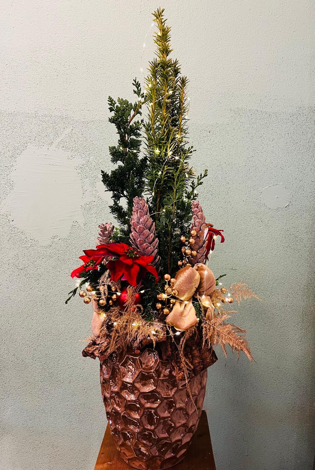 Deze hoge vaas gevuld met een mooi kerststuk heeft een mooie, lange dennentak wat voor sfeer in huis zorgt. Wij vinden het zelf het mooiste met lichtjes, maar uiteindelijk bepaal jij dit natuurlijk zelf.