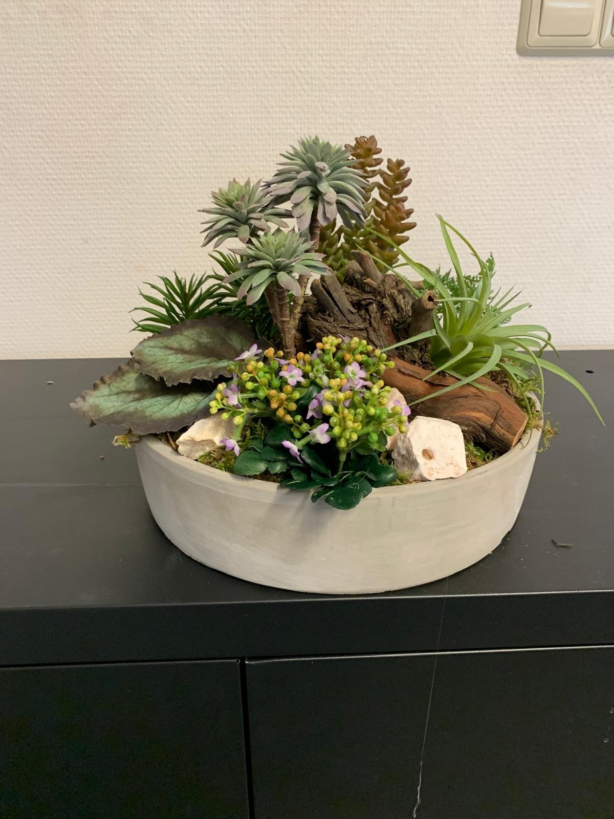 Succulentenschotel met houtaccenten
