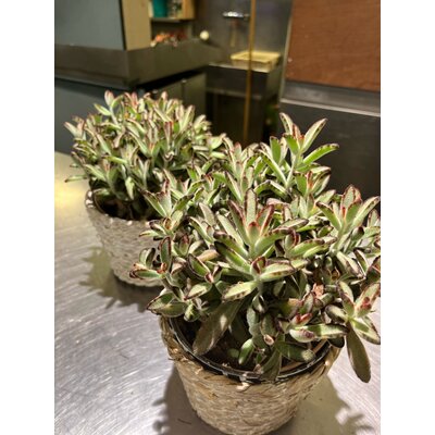 Deze stevige vetplant is een prachtige toevoeging aan elk interieur. Met zijn compacte groei en dikke bladeren vraagt hij weinig verzorging en blijft hij lang mooi. De natuurlijke gevlochten mand geeft een warme en rustieke uitstraling, perfect passend in zowel moderne als landelijke interieurs. Ideaal voor op tafel, een vensterbank of een kast.